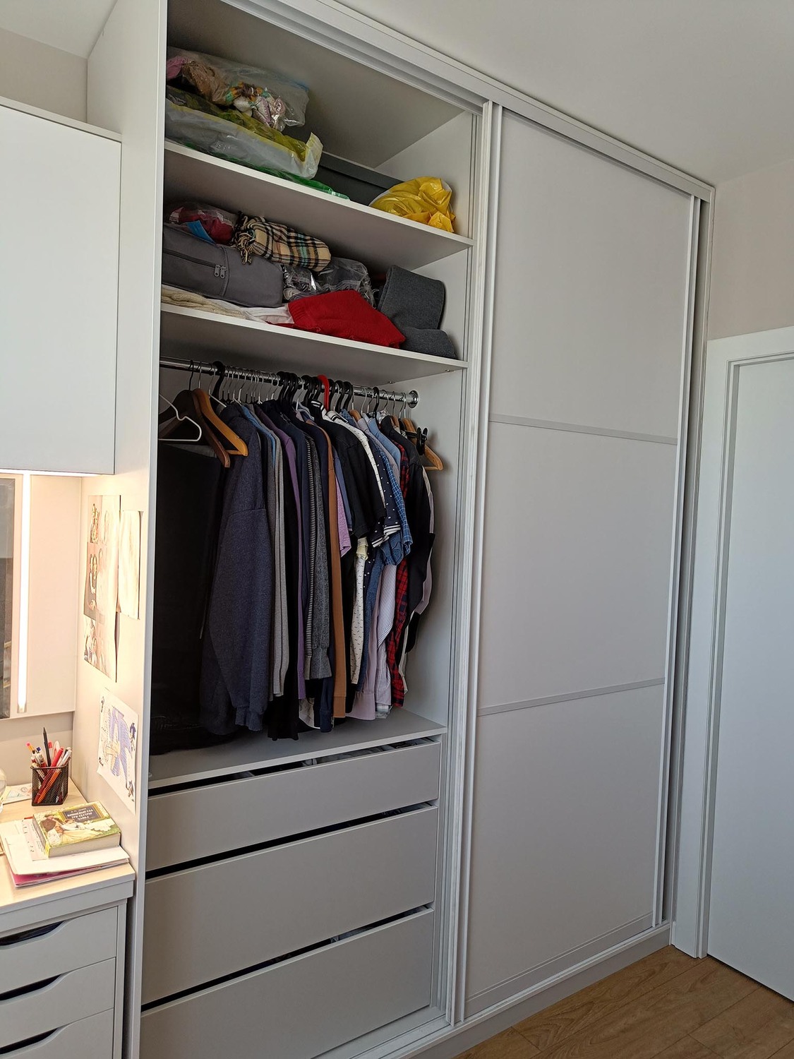 Справа аналогичное наполнение, но с упором на длинные вещи, висящие на штанге, ящики при этом немного подвинулись.