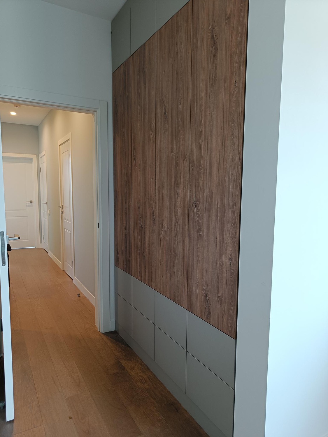 Изготовили и смонтировали 2 элемента мебели в новой квартире. Мебель выполнена в одном стиле и соответствует общей концепции помещения. Собрана из ЛДСП Egger 16мм двух цветов.